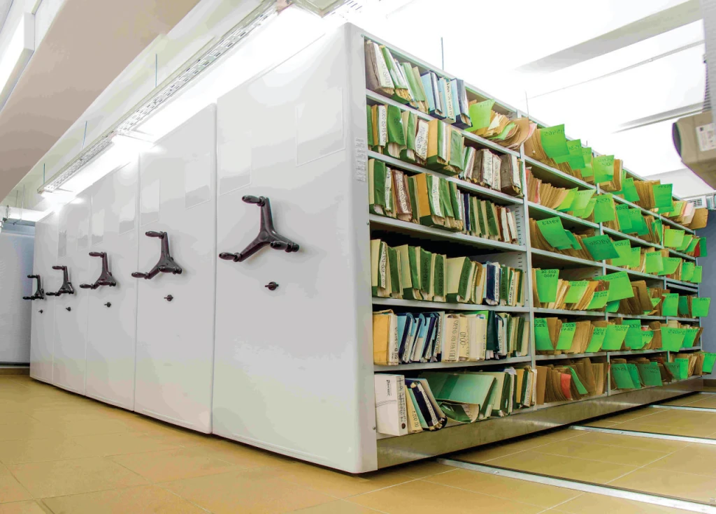 Система раздвижных стеллажей — выгодное решение для любого архива: ЗАГСа, бухгалтерии, налоговой, больницы, библиотеки, института, музея, офиса. Их главная задача — сэкономить полезное пространство в небольшом помещении, сохранив драгоценные квадратные метры. В условиях небольшой площади архивного фонда в любой отрасли. И с этим они справляются на все 100%!
