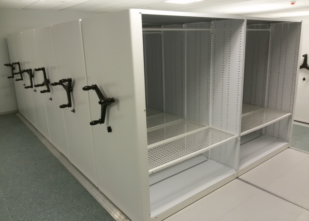 Оптимальное решение для ограниченного пространства при большом объёме хранения. Подвижные ряды увеличивают вместимость помещения в 2 раза, что удобно для крупных складов и цехов с небольшой площадью.
