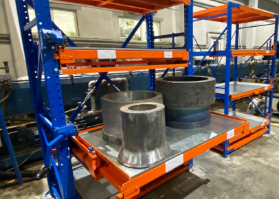 Особенности конструкции стеллажей серии Slide позволяют разместить на выкатных платформах подобные объемные грузы. Удобство и безопасность работы в этом случае сочетаются с экономией используемых площадей за счет применения подъемных механизмов. Все операции по закладке-выкладке продукции могут осуществляться одним человеком.